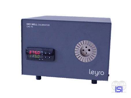 Leyro portable temperature dry well LHC 400 for temperature calibrations between +40 ºC… 375 ºC. With a stability of ±0,05ºC, an uniformity of ±0,2 ºC and an accuracy of ±0,3 ºC , it offers a versatile solution for calibrating thermocouples in all kind of industrial environments, offering excellent results and a fast response time. The LHC 75 is easy to use thanks to its compact and light design. Thanks to big size of the insert, it has a big drilling capacity and can calibrate a lot of thermocouples at the same time. Apart from the standard insert (A) you can choose different types of optional inserts, so the equipment can be adapted to any circumstances.